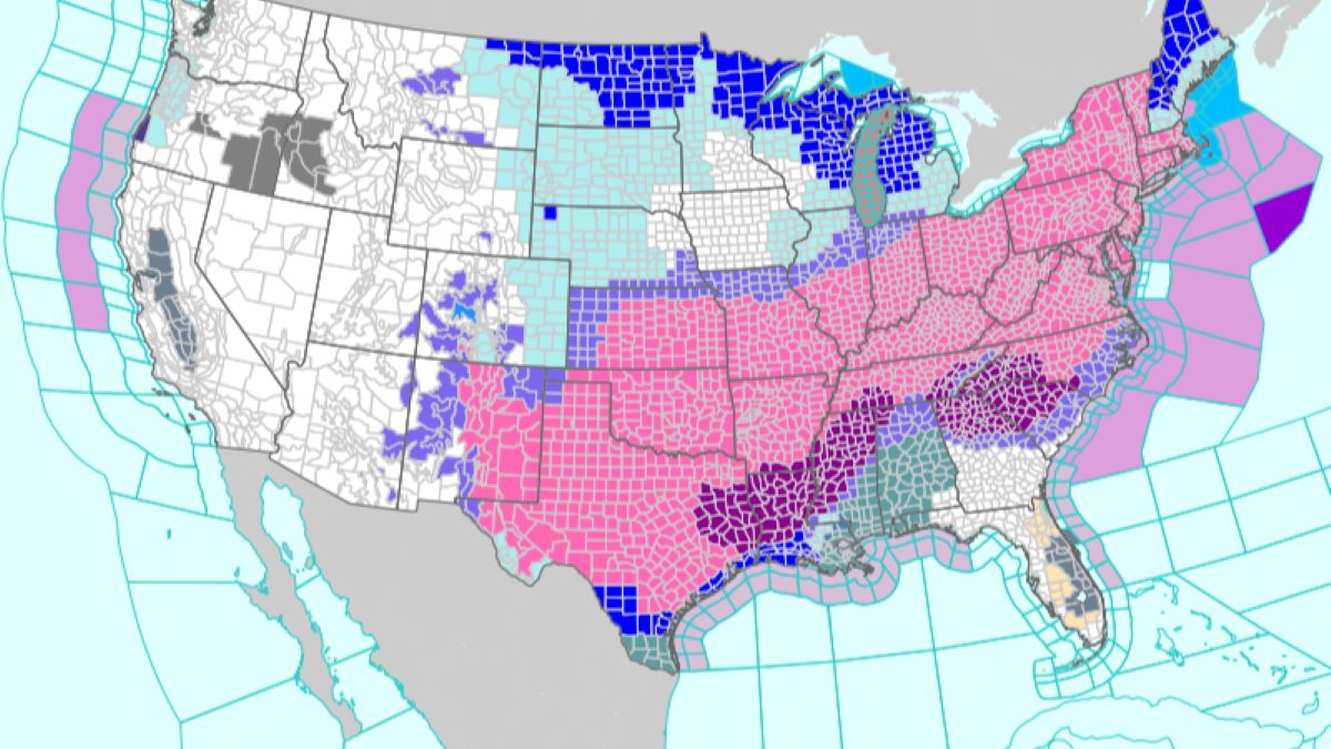 Furtuna de iarnă este așteptată să se extindă, pe parcursul weekendului, din sudul SUA până în nord-estul țării, aducând cantități mari de zăpadă și gheață. Conform postului american ABC, în anumite regiuni s-ar putea depune un strat de polei cu grosimea de două până la trei centimetri, suficient pentru a „paraliza traficul rutier”.