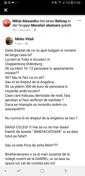 De asemenea, a întâlnit o a doua femeie care a fost defăimată pe Facebook folosindu-se unul dintre profilurile false. Și aceasta este implicată în munca pentru muncitorii din industria cărnii.