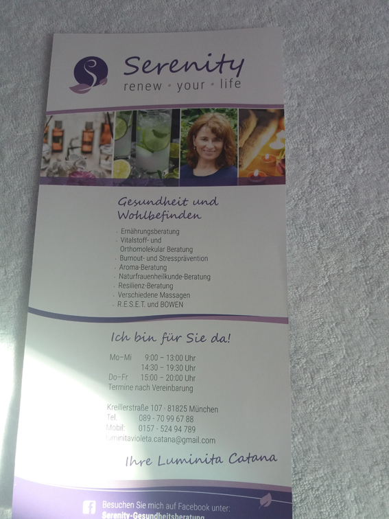 „Serenity _renew your Life” este mai mult decât un logo sau un nume, este un crez, o voinţă şi dorinţa de a reuşi. Dumnezeu mi a dăruit atâtea lucruri minunate a trebuit doar să mă străduiesc şi să iubesc ceea ce fac.