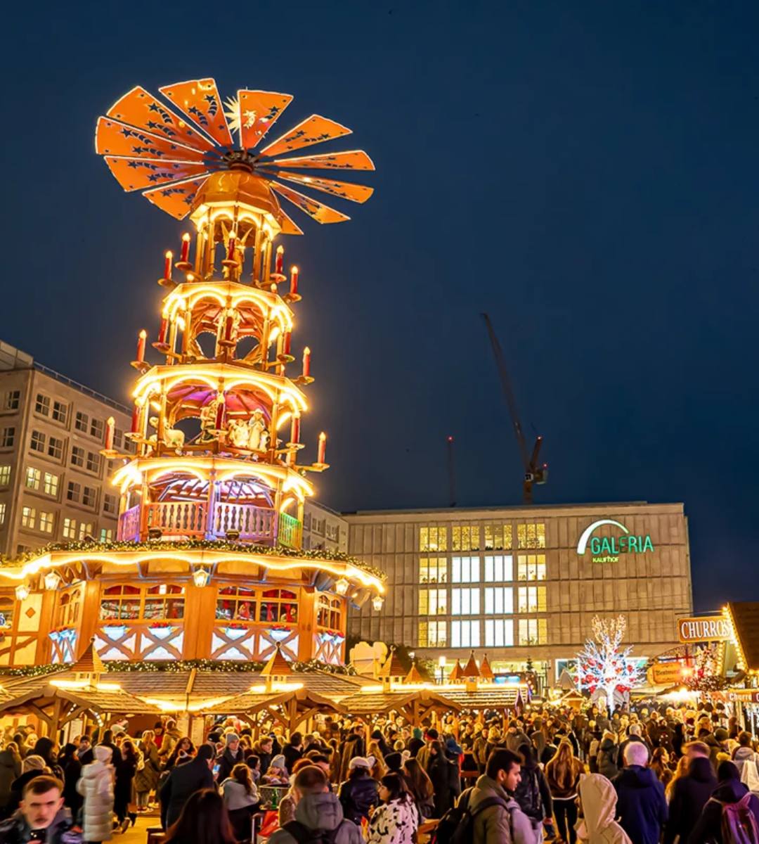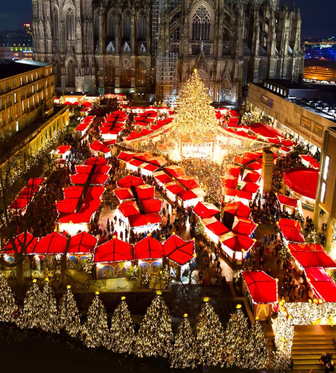La Köln, sărbătorile se desfășoară sub umbra impunătoarei catedrale gotice, unde piața de Crăciun devine un spațiu al emoției și al tradiției. Lumina reflectată în vitraliile catedralei și focurile de artificii de pe Rin creează un tablou spectaculos, imposibil de uitat.