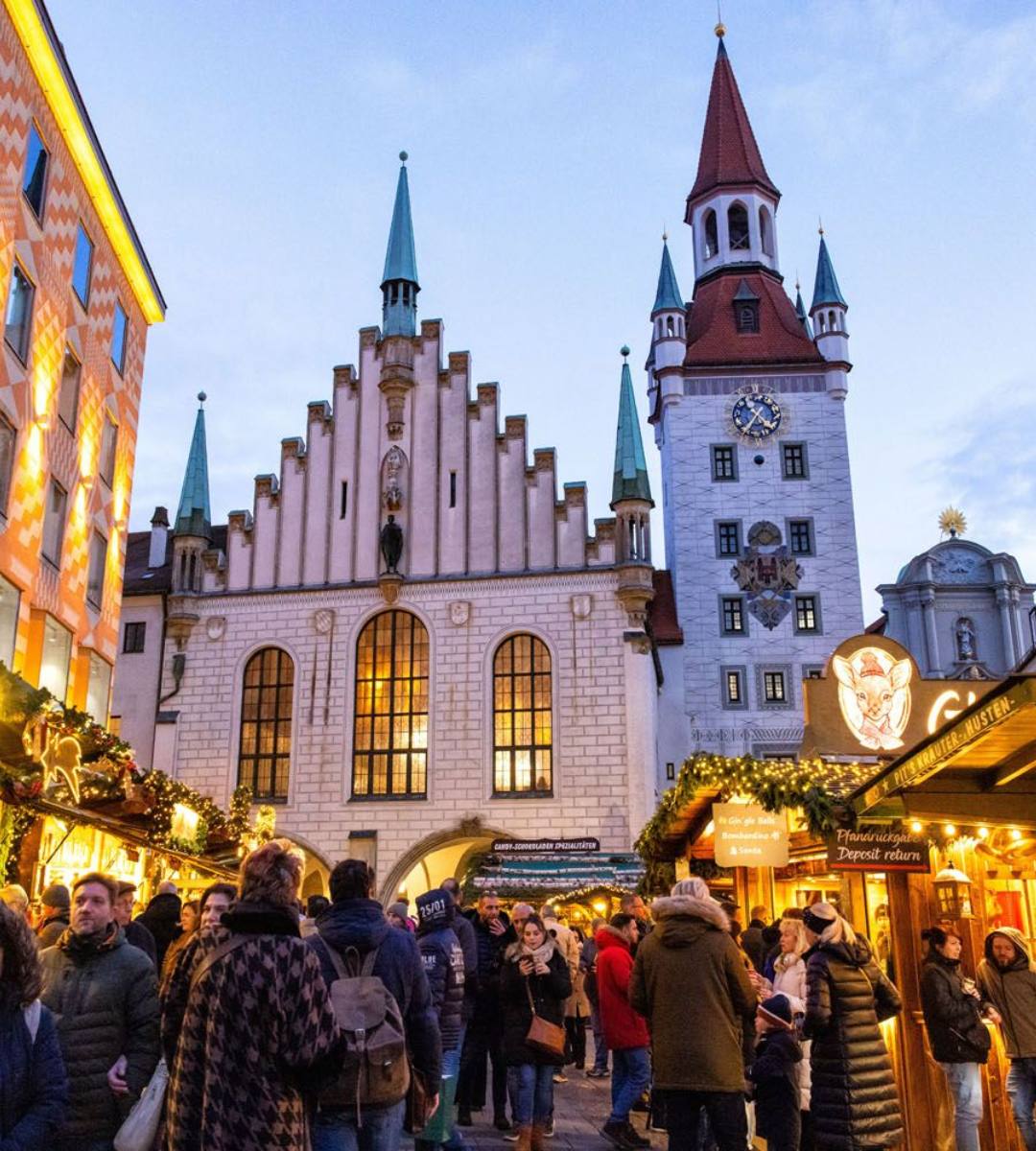 În sudul Germaniei, München își etalează farmecul bavarez prin piețe de Crăciun vibrante și pline de viață. Marienplatz se umple de colinde, miros de vin fiert și turtă dulce, iar orașul reușește să combine eleganța istorică cu bucuria populară a sărbătorilor.