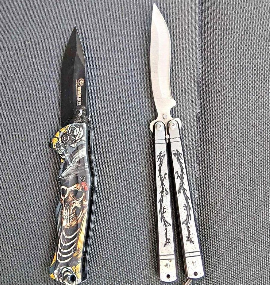 Un al doilea caz a fost înregistrat în jurul orei 13:00, când forțele de control au oprit la intrarea în Germania un autoturism cu numere de România. La verificarea mașinii, polițiștii au descoperit, în torpedoul vehiculului condus de un cetățean român de 24 de ani, un cuțit pliabil (butterfly) și un cuțit cu lamă laterală, ambele fiind arme interzise conform legislației germane. Tânărul a declarat că armele îi aparțin, iar polițiștii le-au confiscat imediat. „Obiectele au fost ridicate, iar împotriva bărbatului a fost deschis un dosar pentru încălcarea Legii armelor”, a precizat Poliția Federală. După încheierea măsurilor, românul a fost lăsat în libertate.