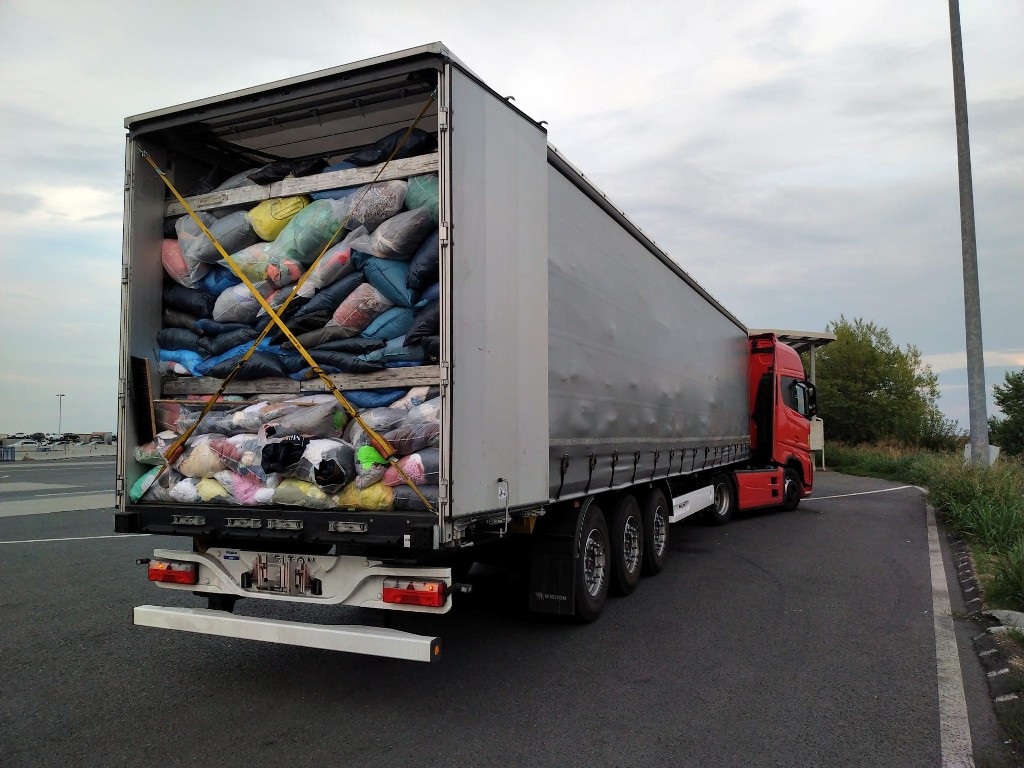 În cadrul verificărilor s-a constatat faptul că mijlocul de transport era încărcat cu 15,6 tone de haine second hand aflate într-o stare avansată de degradare.