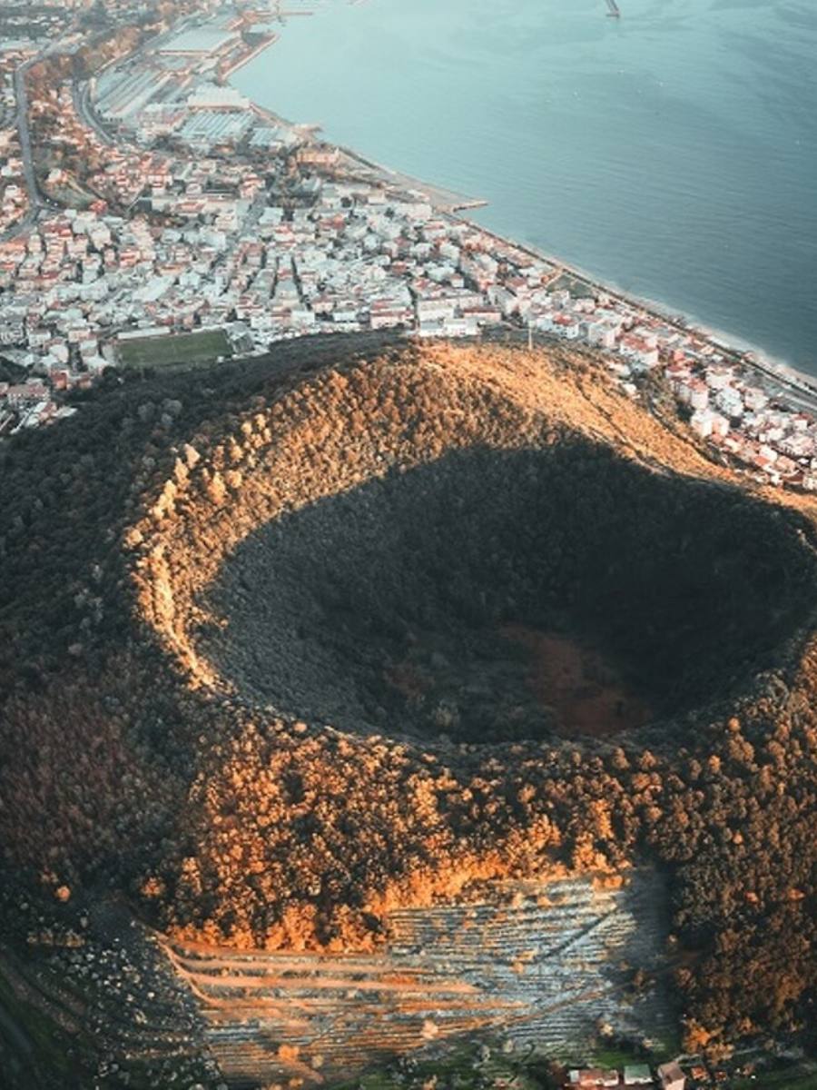 Campi Flegrei (câmpiile Flegree), situat la vest de orașul italian Napoli, nu este un vulcan obișnuit, ci o calderă de 15 kilometri diametru, formată în urma unei explozii colosale petrecute acum 39.000 de ani – una dintre cele mai mari erupții din ultimii 100.000 de ani. Astăzi, regiunea dă semne de neliniște: solul se ridică și coboară, fumul iese din cratere, iar cutremurele se repetă aproape zilnic.