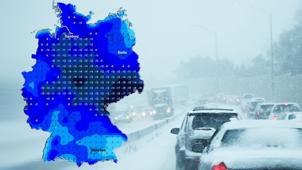 Duminică, centrul undei de frig se va muta spre nord-vest, unde se vor înregistra minime cuprinse între –11 și –18 grade. Practic, întreg teritoriul Germaniei va fi sub influența gerului.