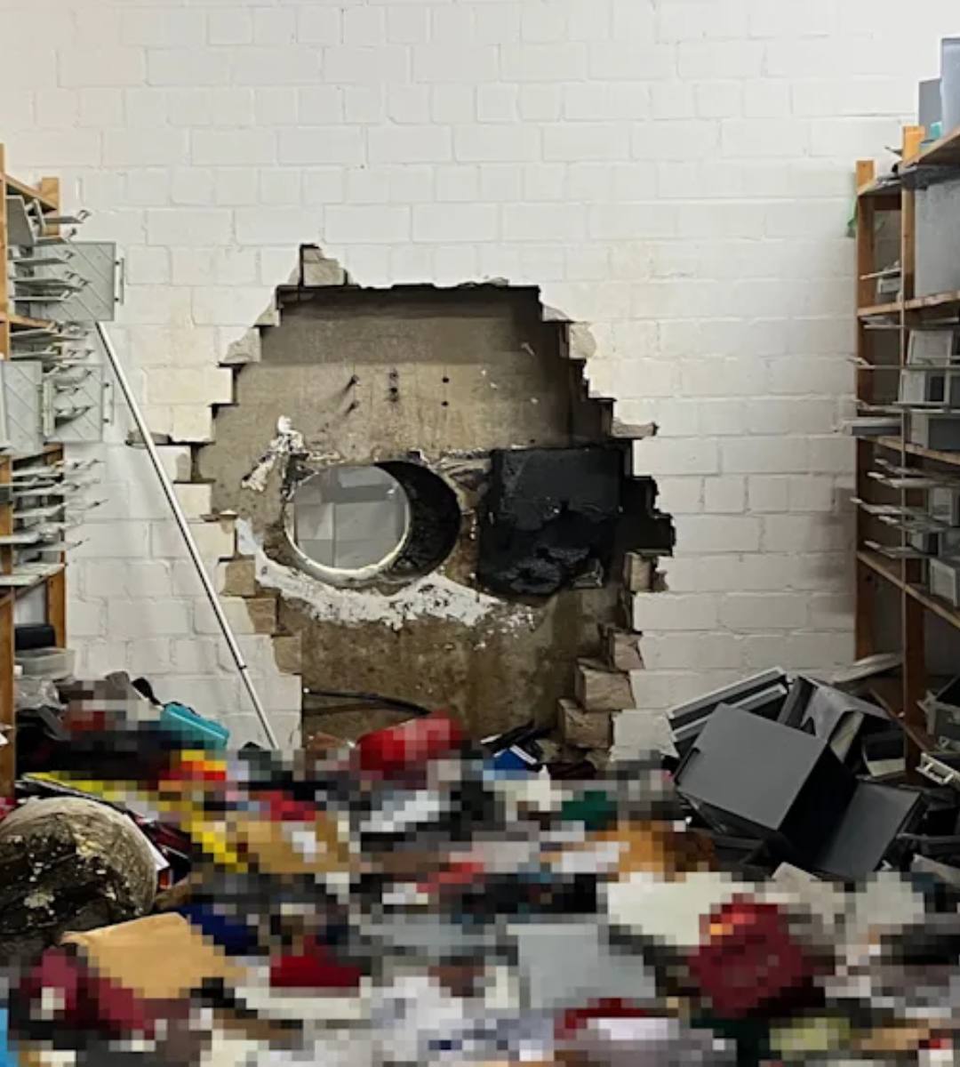 Primele indicii au apărut abia luni dimineață, la ora 3:58, când pompierii au fost alertați de un semnal de incendiu. Nu flăcările au fost problema, ci praful rezultat în urma forajului, care a declanșat sistemul de alarmă. Potrivit poliției, autorii au folosit un burghiu de mari dimensiuni pentru a străpunge peretele gros al camerei de seif, acționând cu apă pentru a reduce căldura și particulele de praf, o metodă rar întâlnită în jafurile clasice.