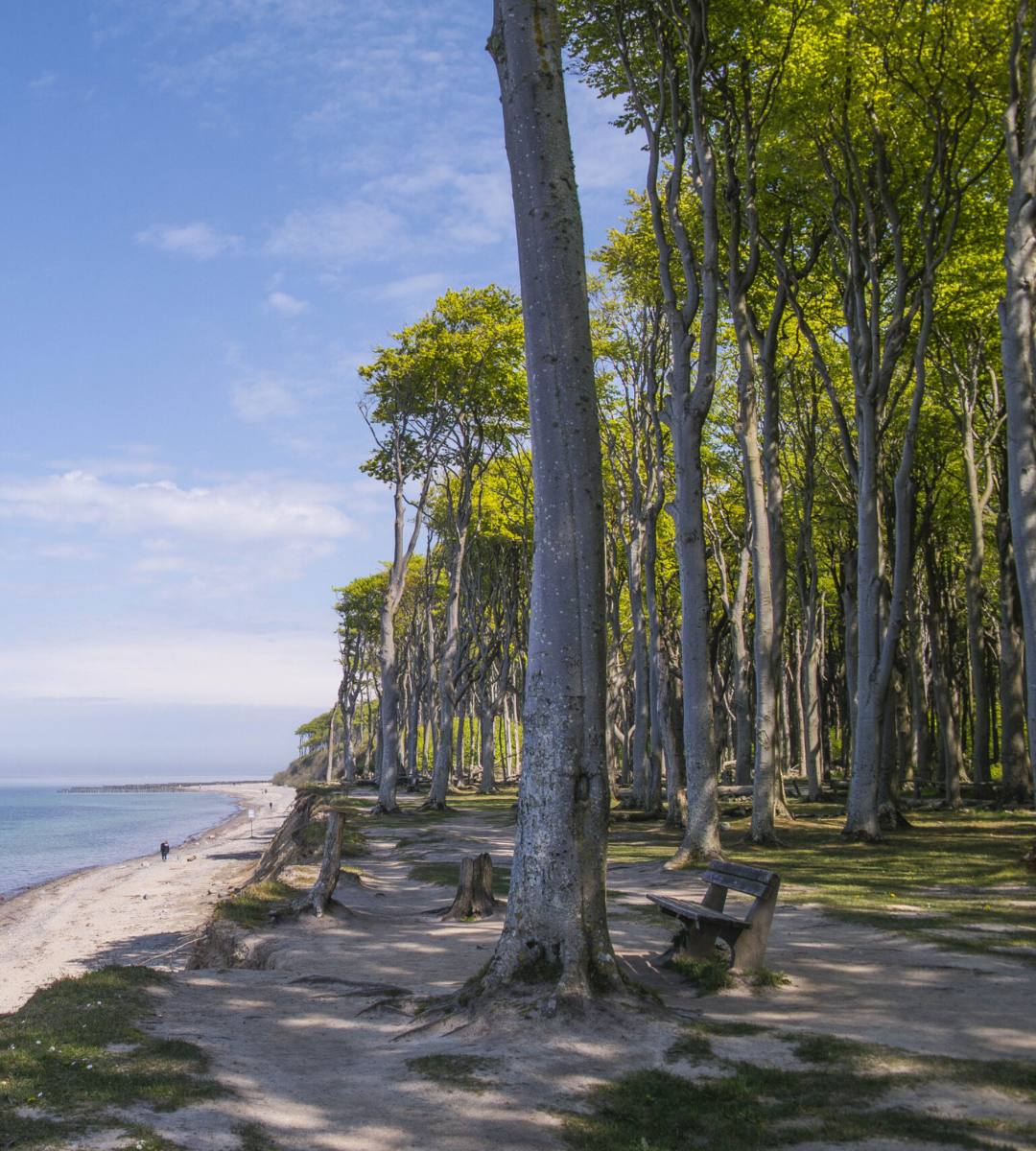 Copacii din această zonă au forme neobișnuite, modelate de vânturile puternice și de aerul sărat adus de mare. Stejarii, fagii, carpenii și frasinii cresc la distanțe relativ mari unii de alții, iar ramurile lor răsucite creează o atmosferă aproape spectrală. Dincolo de pădure începe un traseu de drumeție care urmărește linia dramatică a falezei de pe litoralul Mării Baltice, un loc unde natura și liniștea domină peisajul.