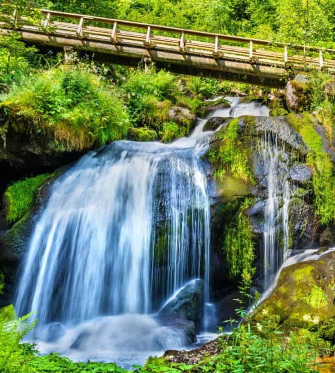 Cascadele Triberg, situate în Pădurea Neagră, se numără printre cele mai înalte din Germania, în afara Alpilor. Apa cade de la o înălțime de 163 de metri, creând o priveliște spectaculoasă, cel mai bine văzută din diverse puncte de-a lungul traseelor de mers pe jos. O rețea extinsă de trasee vă permite să vă adaptați călătoria la ritmul propriu – de la o plimbare scurtă la o drumeție mai lungă prin pădure.