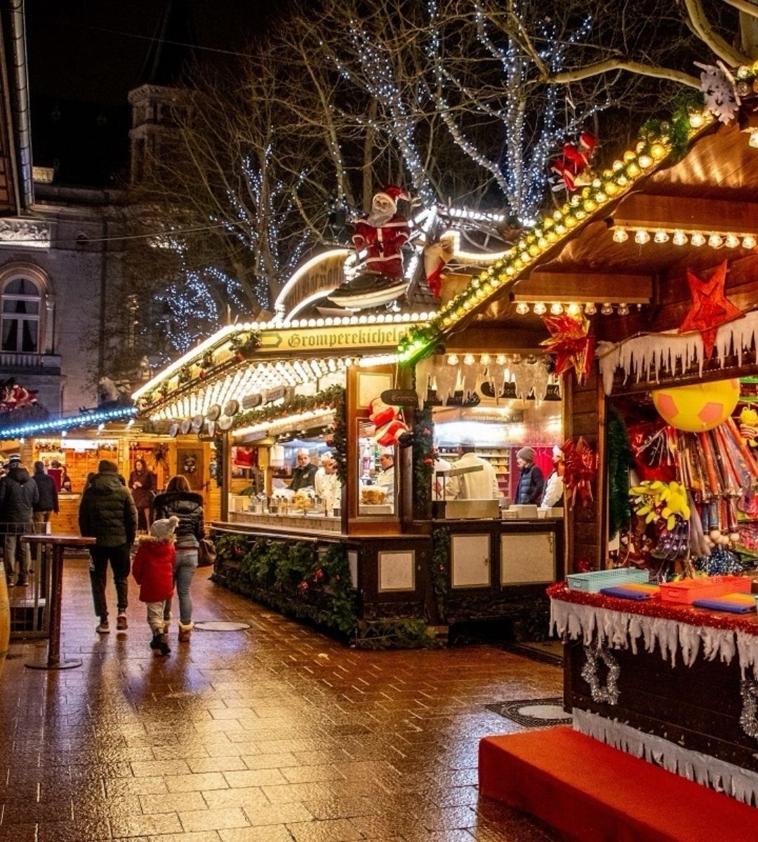 Târgurile se desfășoară în piețe iconice precum Place d’Armes și Place de la Constitution, unde vizitatorii se plimbă printre căsuțe din lemn, miroase de castane coapte și turta dulce, suveniruri lucrate manual și specialități locale. Atmosfera este completată de concerte live, artiști stradali și un ritm calm, perfect pentru cei care vor să se bucure de Crăciun fără mulțimile sufocante ale marilor capitale.