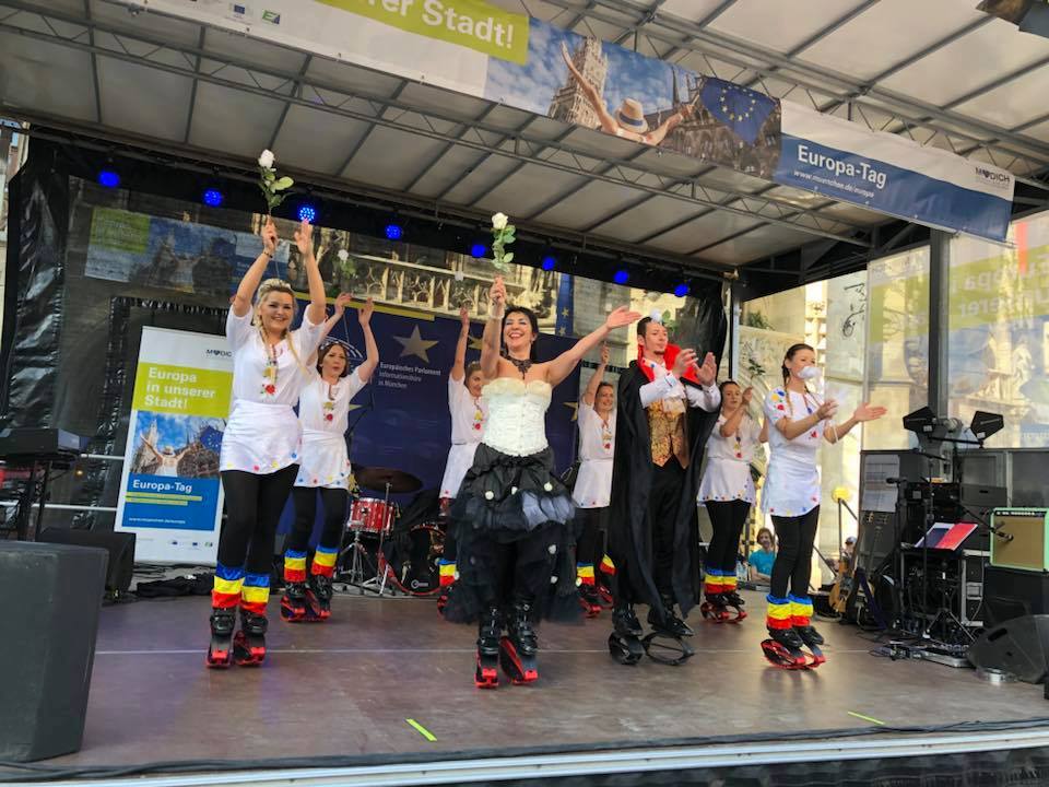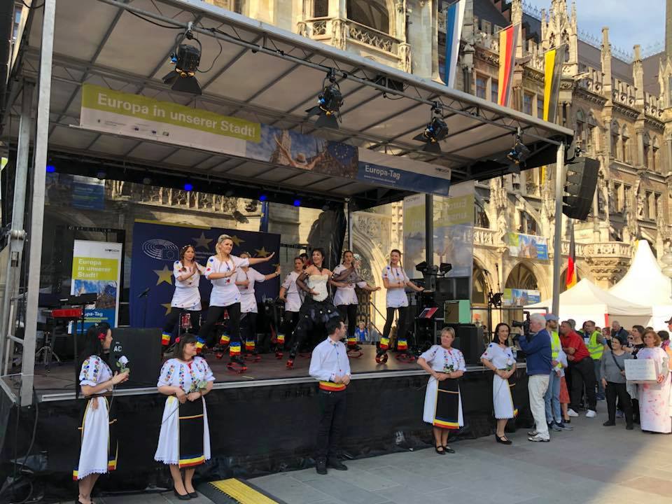 Ziua Europei (9 Mai) a fost sărbătorită la München printr-un spectacol organizat chiar în fața impozantei clădiri a primăriei, cu momente artistice ale mai multor țări europene, iar reprezentanții României au reușit să facă un adevărat show, și pe scenă și în jurul ei, fiind aplaudați de întreaga audiență.