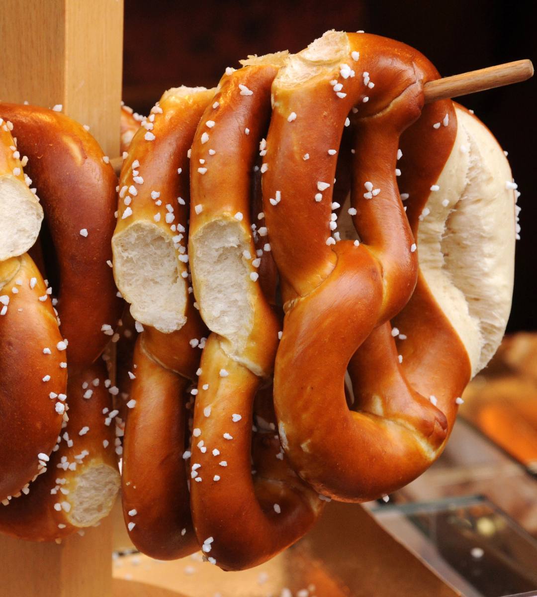 Alături de ea apare adesea celebrul covrig pretzel de Anul Nou, un simbol al continuității și al norocului fără sfârșit. Spre deosebire de pretzelul clasic, acesta este realizat din aluat dospit, este mult mai mare și poate cântări în jur de 600 de grame. Uneori, ascunde chiar monede în interior, transformându-l într-un cadou cu dublă semnificație: gust și speranță.
