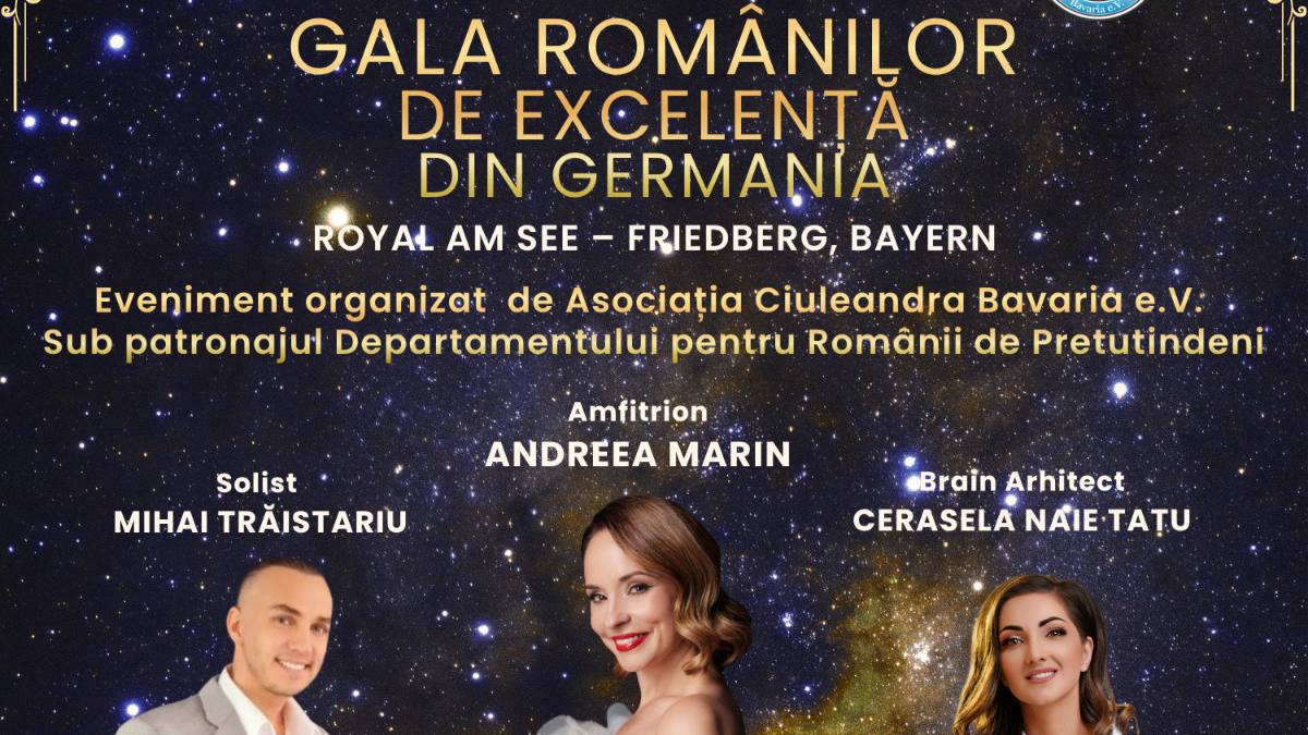 Pe 16 mai 2026, în sala Royal Am See din Friedberg, Bavaria, câteva sute de români din Germania se vor îmbrăca elegant pentru a aplauda și a fi aplaudați la un eveniment important. Gala Românilor de Excelență din Germania — eveniment la prima sa ediție, organizat de Asociația Ciuleandra Bavaria e.V. și desfășurat sub patronajul Departamentului pentru Românii de Pretutindeni — propune un gest care pare simplu, dar care pentru diaspora are o greutate aparte: recunoașterea publică, oficială și festivă a celor care au reușit departe de casă.