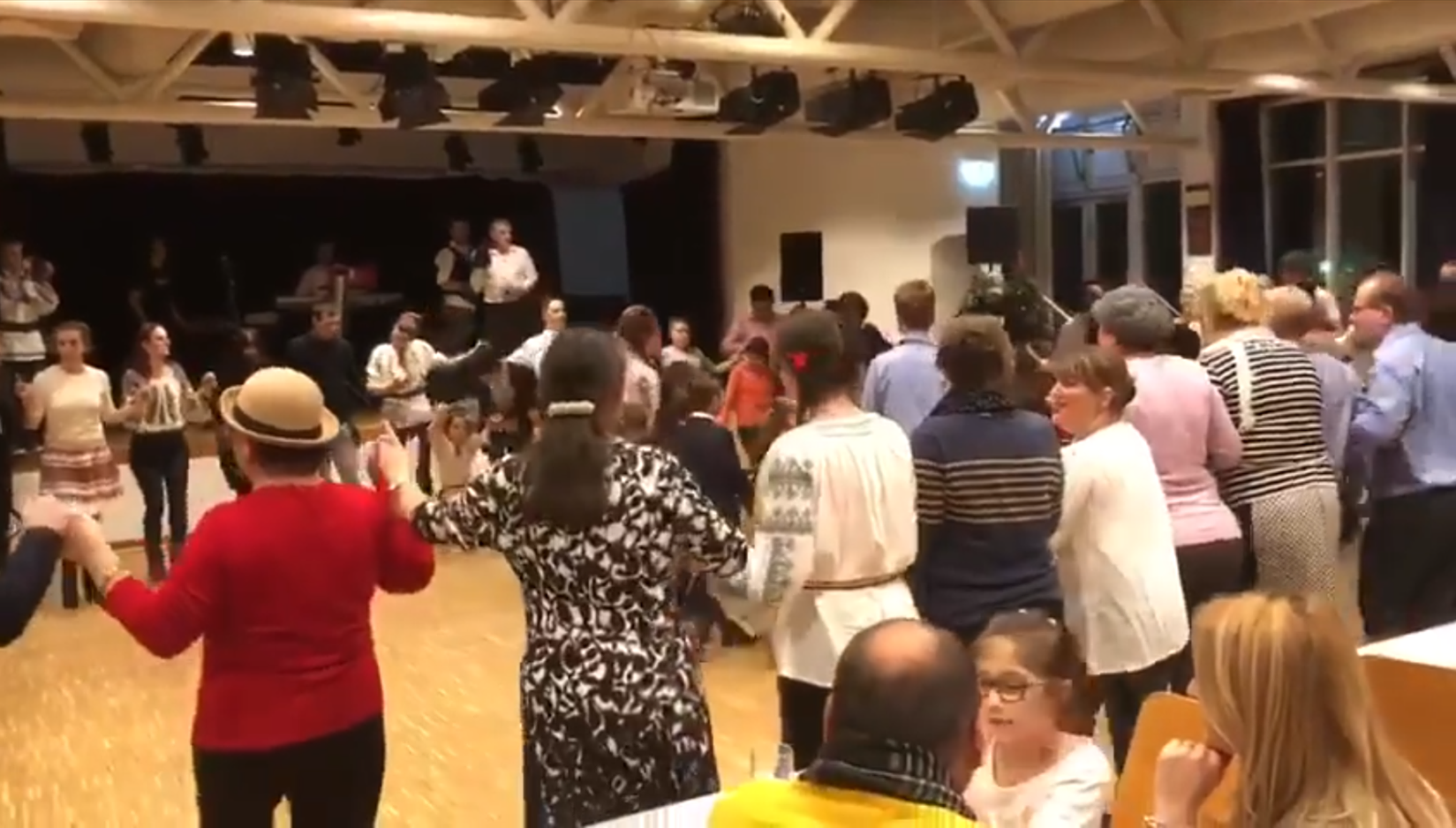 - Imnul României cântat de o sală întreagă și Hora Unirii, cu români și nemți de mână