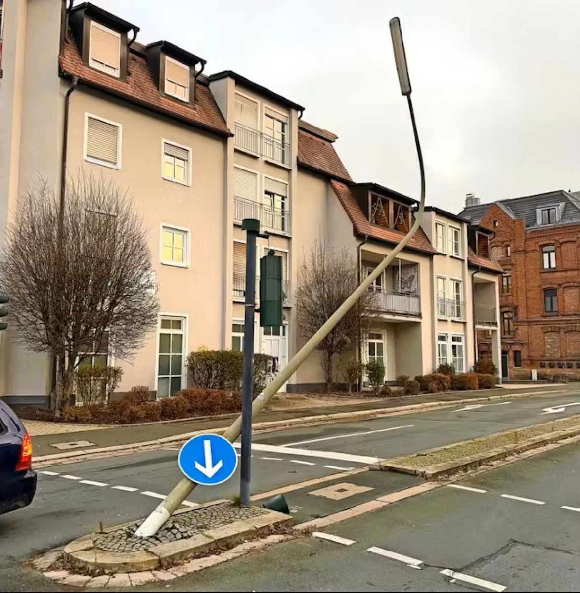 Potrivit poliției, în momentul în care șoferul a încercat să vireze la stânga pe Negeleinstraße, camionul nu a putut avansa, iar bărbatul a decis să dea cu spatele. În timpul manevrei, a lovit cu partea din spate un semafor și un stâlp de iluminat aflate în intersecția opusă. Impactul a provocat un prejudiciu estimat la 40.000 de euro.