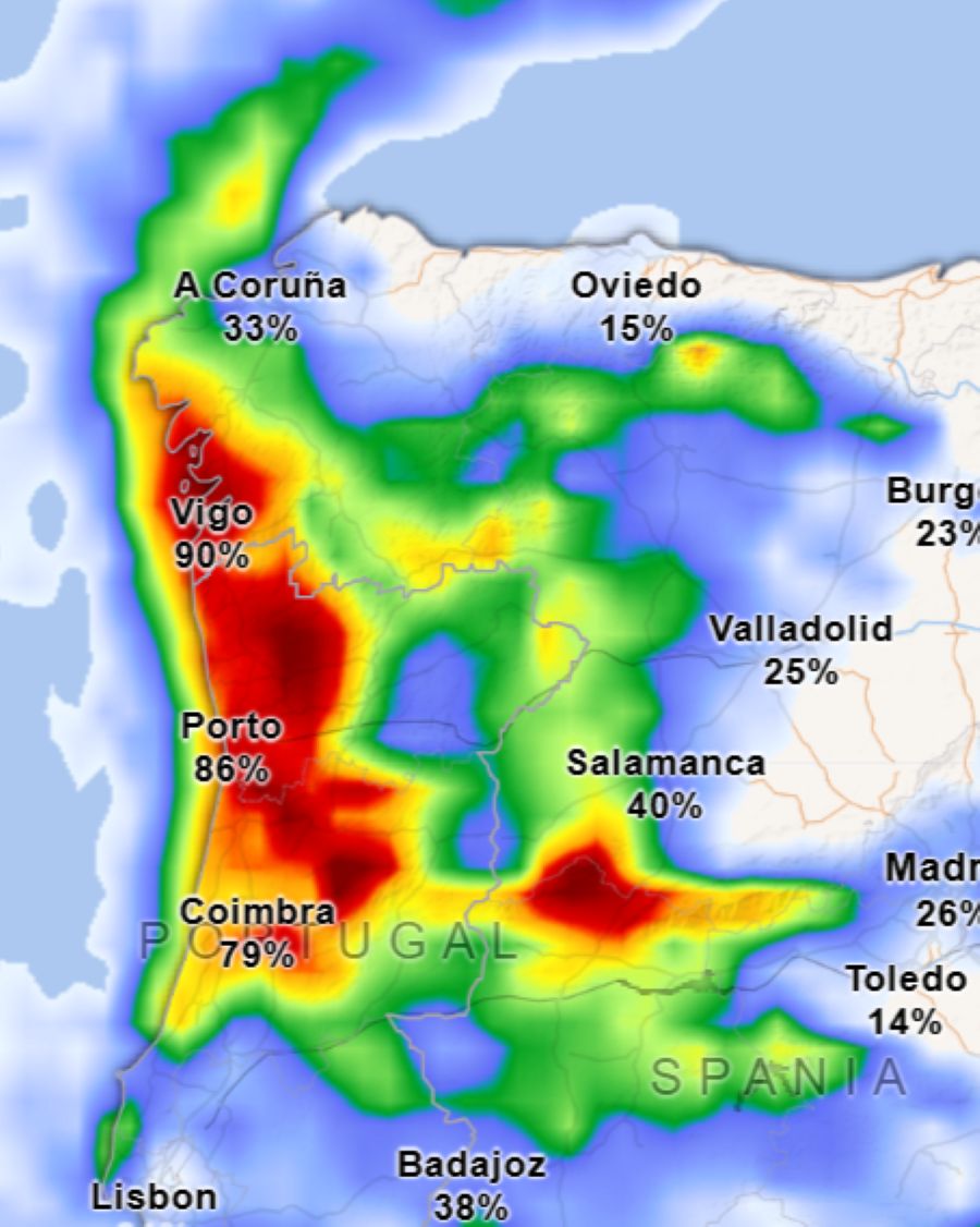 Sistemele de furtuni se deplasează spre est, urmând să afecteze și Spania, unde sunt așteptate condiții de iarnă rece și umedă. Deși în Mallorca vremea a fost încă predominant însorită duminică, cu temperaturi de până la 16 grade, serviciul meteorologic spaniol Aemet avertizează că și aici sunt posibile ploi în zilele următoare, după ce săptămâna trecută au fost deja raportate inundații.